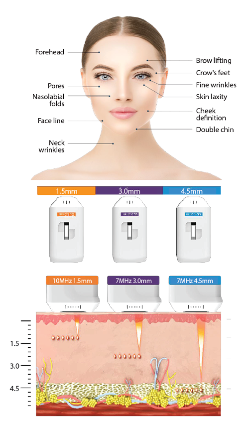 Ultherapy (First Generation High Intensity Focused Ultrasound) is one of the most well-known 5D Ultra HIFU treatments available in the market. It works by delivering ultrasound energy in a bullet-like manner to cause instant tightening of the Superficial Musculo Aponeurotic System (SMAS) layer of the face, stimulating collagen production without the need for cutting the skin surface. The SMAS is the muscular layer that plastic surgeons pull and tighten in a surgical facelift procedure.